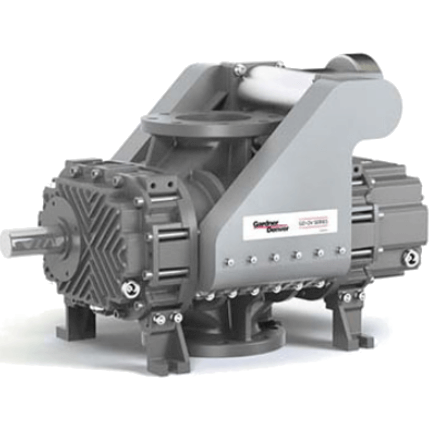 A série RB-DV consiste de um soprador rotativo de 3 lóbulos usado como exaustor, sem superaquecimento graças a um dispositivo de injeção de ar atmosférico patenteado. Pode atingir níveis de vácuo de até 93% quando há queda de pressão – 950 mbar sem a necessidade de injetar água ou trocar calor Outra vantagem importante é a operação isenta de óleo.